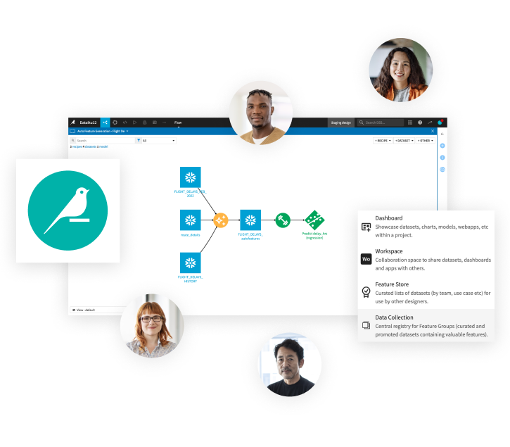 Connect, cleanse, and prepare data 10x faster with Dataiku. From data preparation, effortlessly transition to anything from basic analysis, to modeling, and even deployment — all within a single environment.