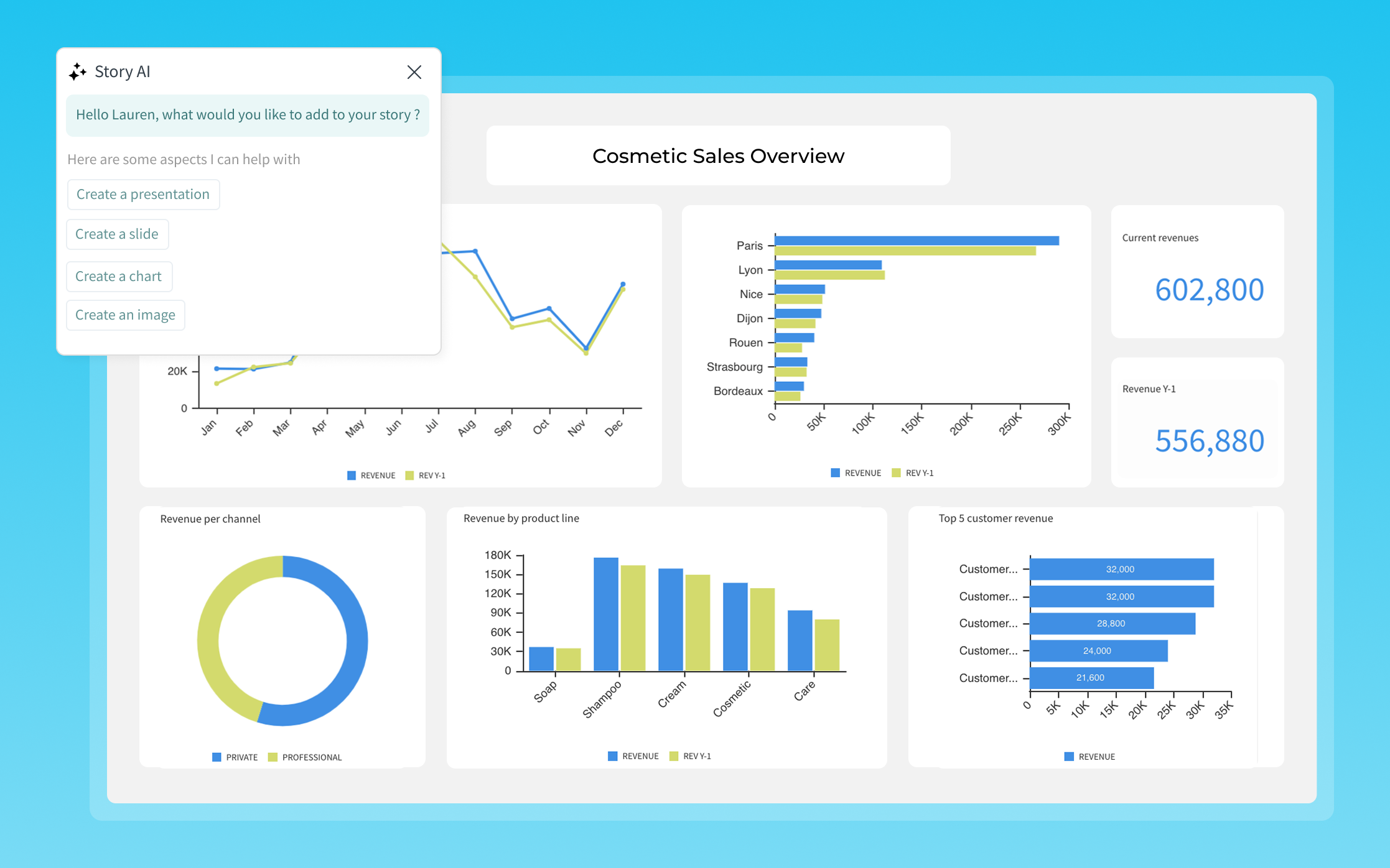 Upgrade your BI and self-service analytics efforts with Dataiku. Everyone makes better, faster everyday decisions built on trusted data via visualization, dashboards, GenAI-powered storytelling, and more.