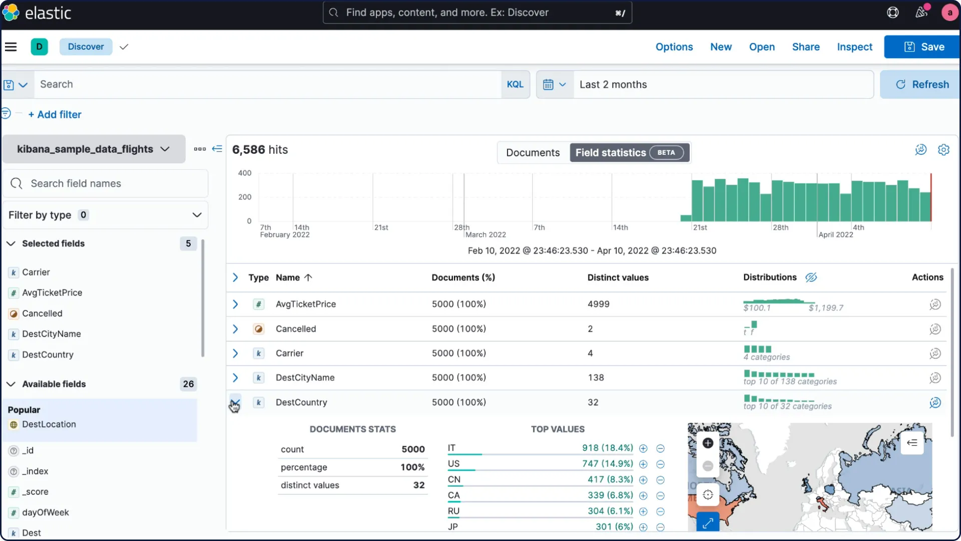 Go from bird's-eye view for strategic data discovery – to worm's-eye view in a few clicks to detect anomalies and troubleshoot issues. See all your fields and data distributions in one place so you can understand your data, transform it if you're missing something, and know the scope of your analysis before you start investigating.