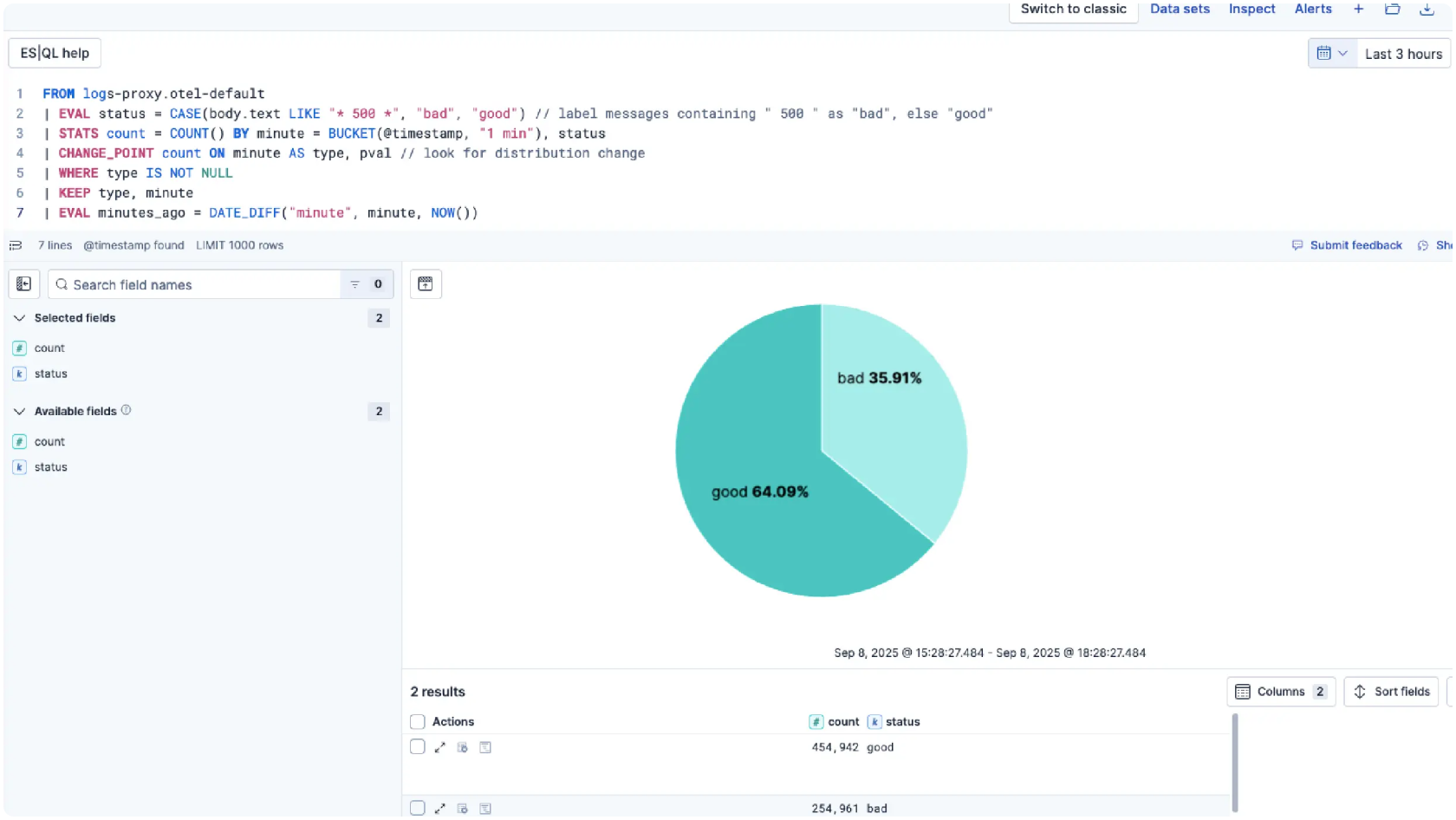 Get Kibana ES|QL IDE complete with data browsing, rich field auto-complete, recommended queries, query history, and more.