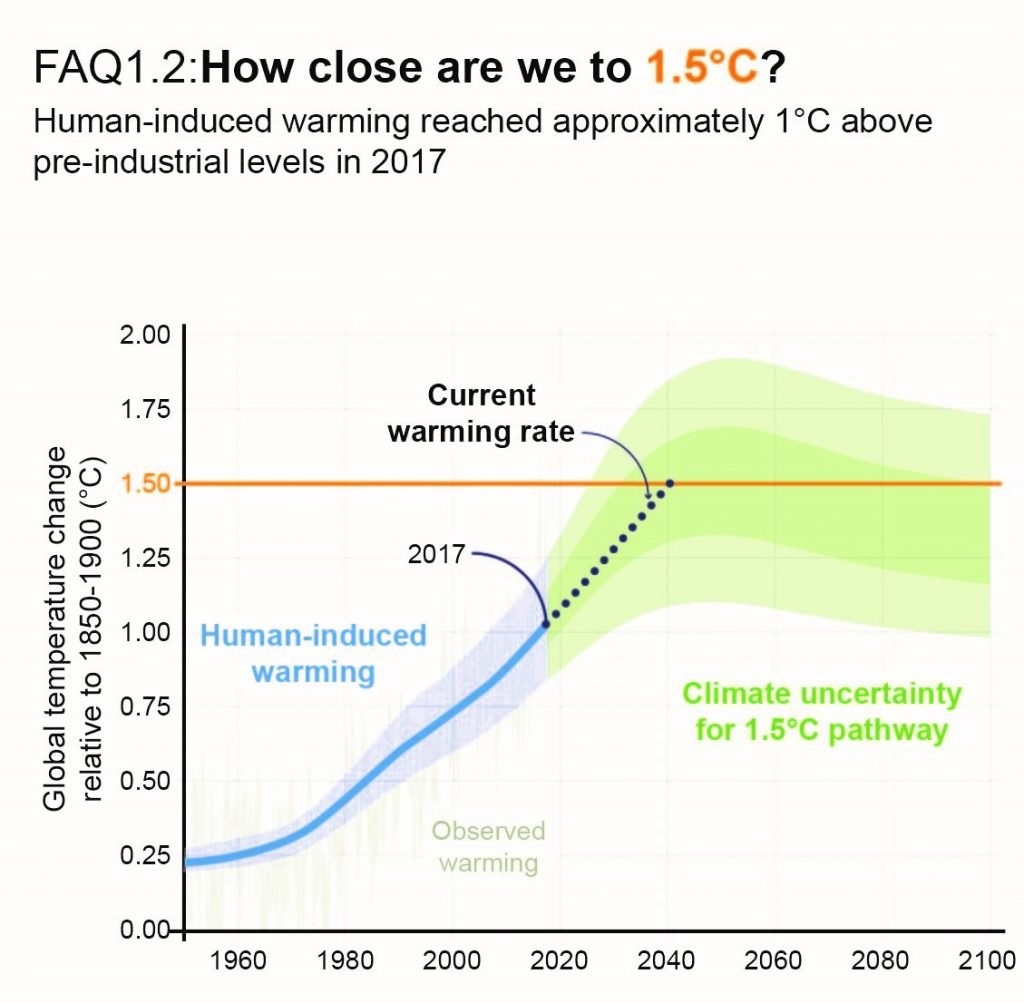 Past emissions alone are unlikely to raise global-mean temperature to 1.5°C above pre-industrial levels (medium confidence), but past emissions do commit to other changes, such as further sea level rise (high confidence). If all anthropogenic emissions (including aerosol-related) were reduced to zero immediately, any further warming beyond the 1°C already experienced would likely be less than 0.5°C over the next two to three decades (high confidence), and likely less than 0.5°C on a century time scale (medium confidence), due to the opposing effects of different climate processes and drivers. A warming greater than 1.5°C is therefore not geophysically unavoidable: whether it will occur depends on future rates of emission reductions. {1.2.3, 1.2.4}