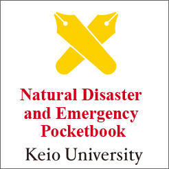 The university has published the Keio University Natural Disaster and Emergency Pocketbook to educate staff and students on disaster prevention. The pocketbook is small enough to fit inside a wallet and contains useful information on how to deal with natural disasters and contacting your family and school in the event of a natural disaster.