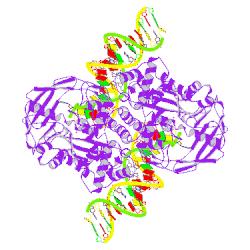 | PDB ID: 1mm8 Steiniger-White, M., Bhasin, A., Lovell, S., Rayment, I., Reznikoff, W. S. (2002): Evidence for "Unseen" Transposase--DNA Contacts. J. Mol. Biol. 322, p. 971. |