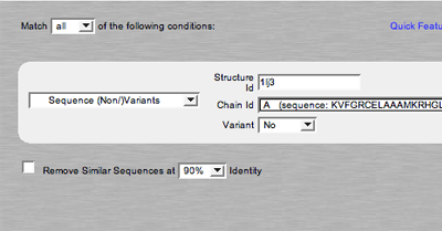 For example, using 1LJ3 chain A, 'variant = No' will pull up structures of lysozyme with no sequence variations.